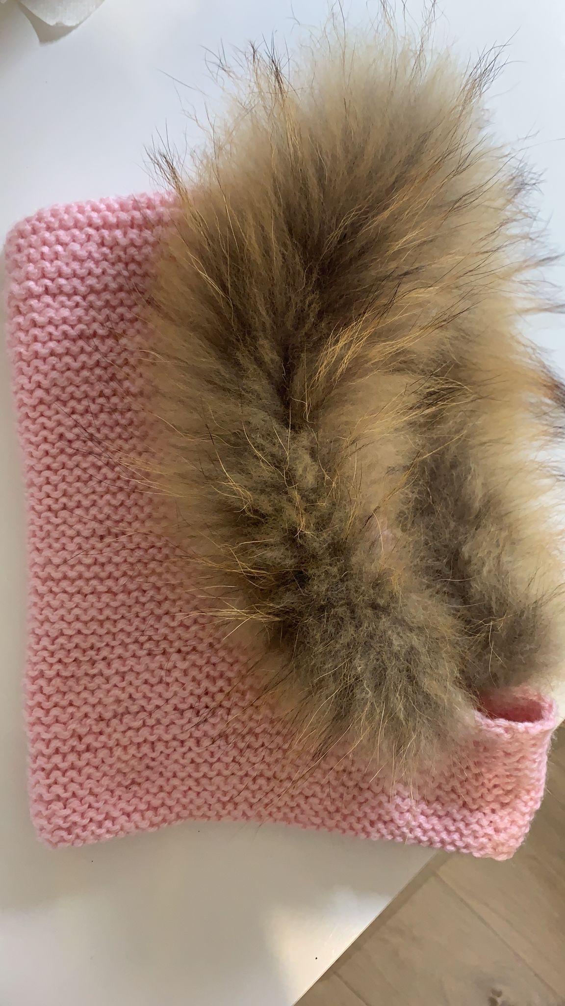 Capucha en lana merino 100%, hecha a mano, con pelo mapache en el borde, perfecta para poner en los abrigos, disponible en muchos colores, si se quiere alguno especial por encargo se puede escoger, marca Littlemanuela, tiempo de proceso 2 semanas.